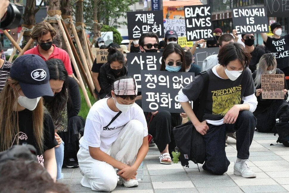 Aunque el K-Pop tiene problemas con el racismo, el cambio en la demografía de Corea del Sur ha llevado a la sociedad en su conjunto a ser más abierta en cuanto a cuestiones raciales. La imagen de arriba es de una protesta en Seúl en 2020. (Fuente: Hankyoreh)